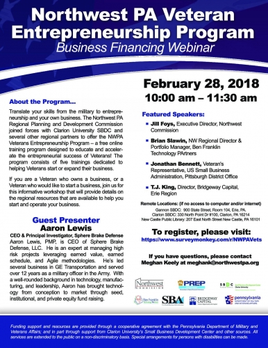 | Northwest PA Veteran Entrepreneurship Program Business Financing Webinar |